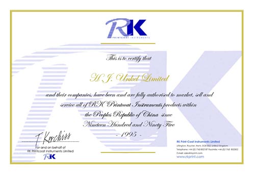 英國RK 涂布打樣機代理證書